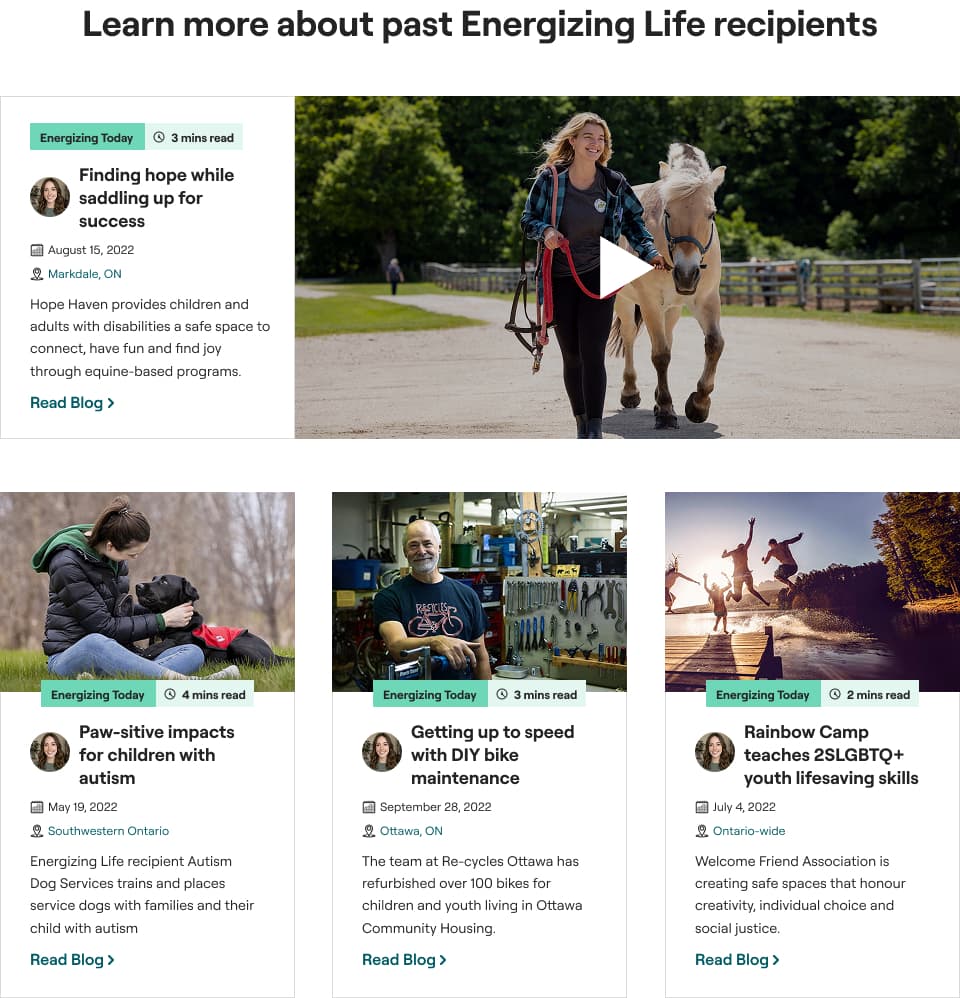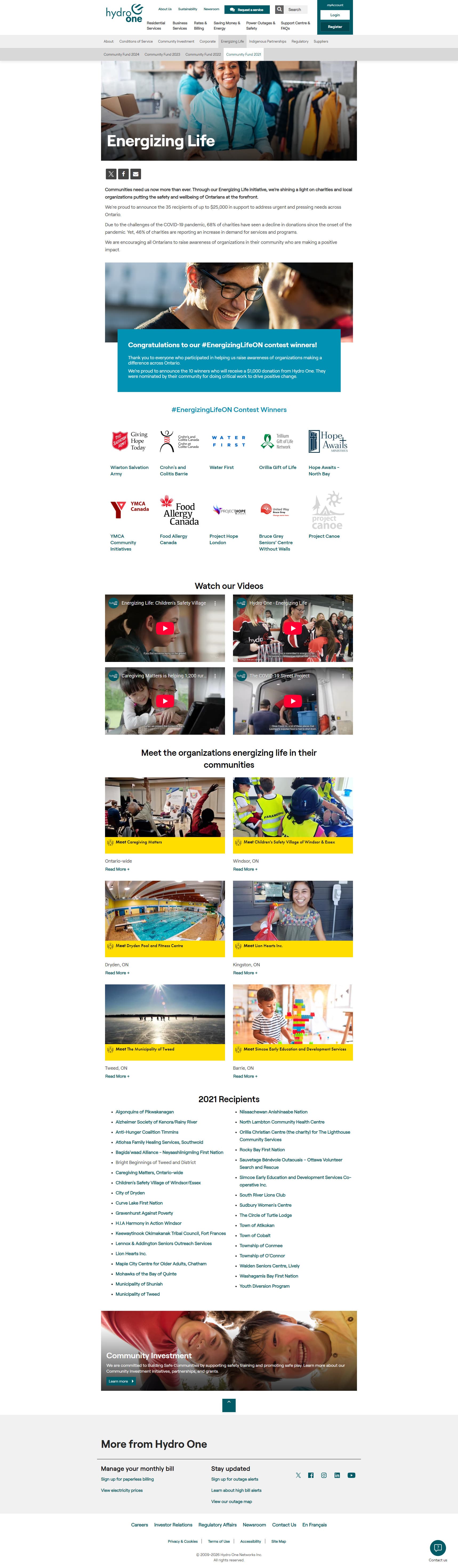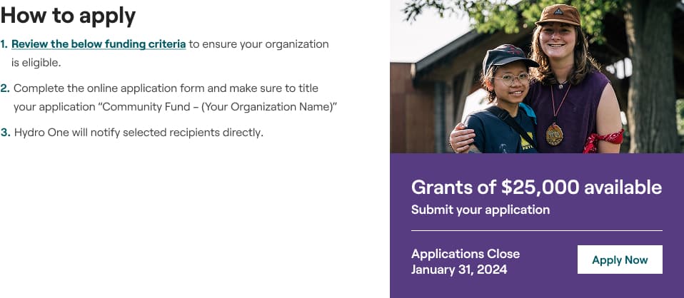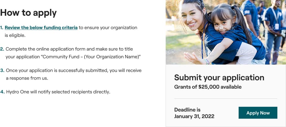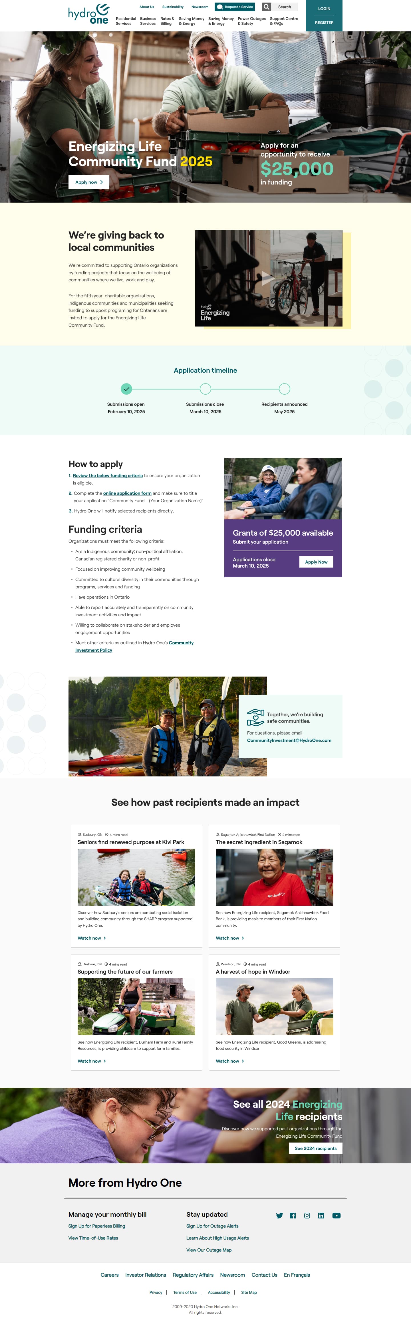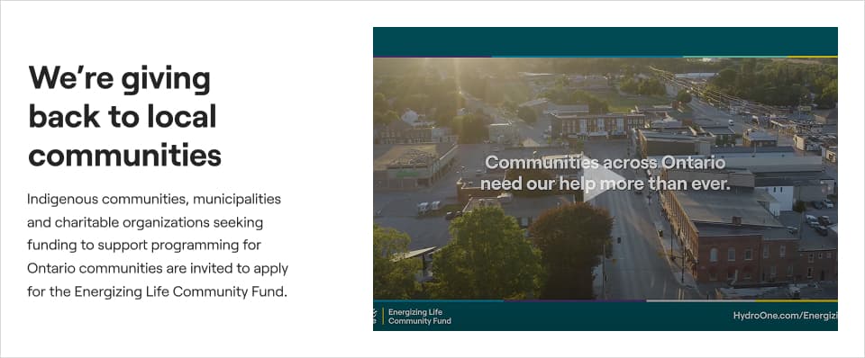Hydro One ran an annual community investment fund opening applications for a 6-week window. The challenge: design a landing page that clearly explains the fund, eligibility criteria, and the application process to drive grant applications.